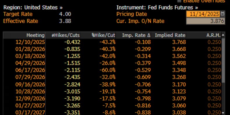 Today we heard from the Fed’s Beth Hammack and Alberto Musalem that the Fed should not lose sight of inflation. Jay Powell himself said December is not a done deal. Its about inflation concerns