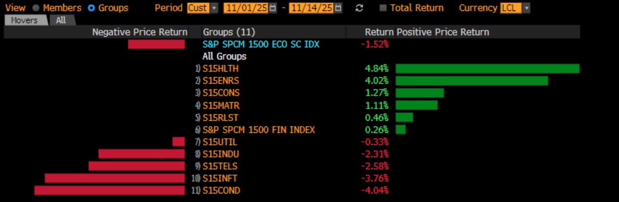 The last few weeks or so there has been pretty clear sector rotation. Maybe it is investors getting a little more worried about the valuations of AI names, or the cross-shareholding arrangements than resemble the Japanese Keiretsu