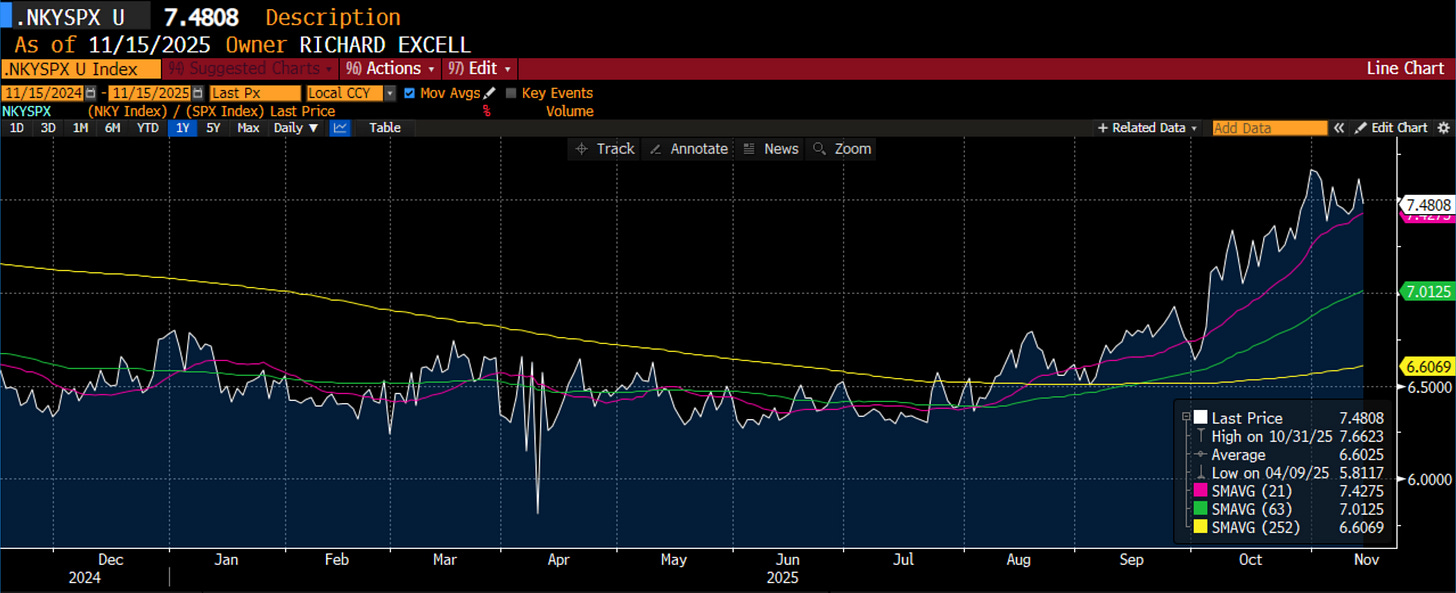 If you want a developed market that has decidedly broken out versus the US it is Japan. New Administration, new monetary and fiscal policies. This is not your parents Japan. Another place to consider for a rotation of assets.