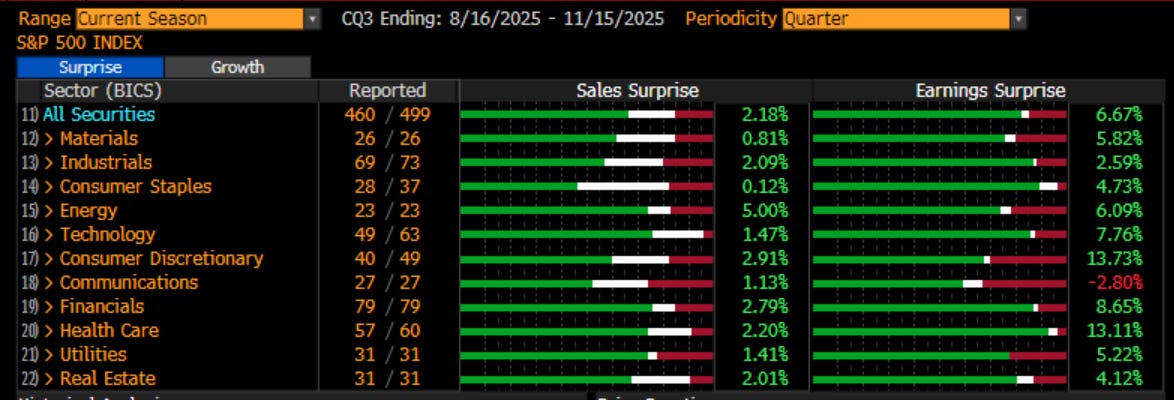 The final earnings season tally I will give. S&P 500 earnings were again quite good, as they always are. The biggest miss was in Communications, likely Meta. Overall, pretty good breadth across the sectors and seeing earnings and revenues come in not only positive, but better than expected.