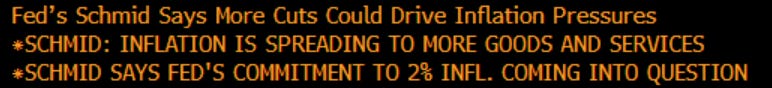 The Kansas City Fed’s Schmid not only highlighting that we are drifting from the 2% target, but tells us the problem is spreading, the Fed’s commitment is being called into question, and more cuts could actually be a problem and not a solution.