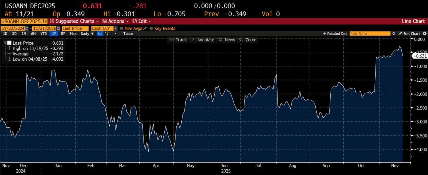 Maybe the biggest catalyst in the near-term is the FOMC. We have gotten many speakers giving us hawk and dove speeches. The rates market, which had a cut full priced after October got down to less than a 30% chance of a cut, before NY Fed’s Williams suggested on Friday we still need a cut. The odds moved up to 63% and this ‘saved’ the market.