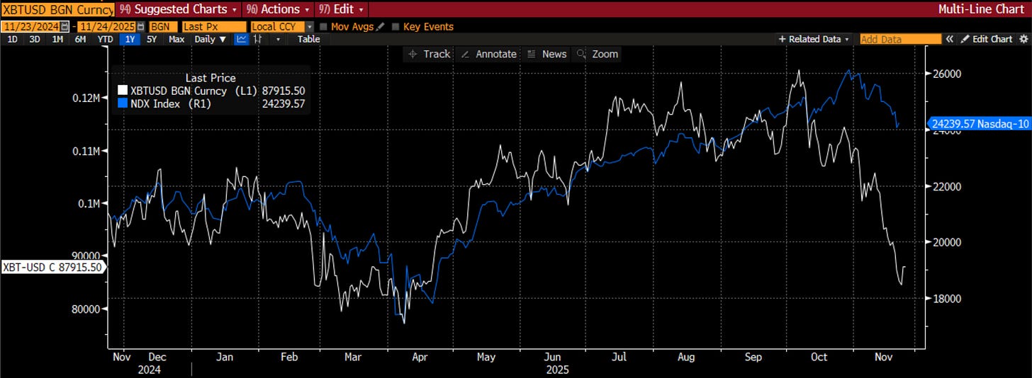 Why does it matter? I think Bitcoin is a great measure of market risk appetite. This is particularly the case as institutional investors moved in. It is another asset with returns, risk and correlation. It will be added and risk managed as such. There is no emotional attachment to the idea