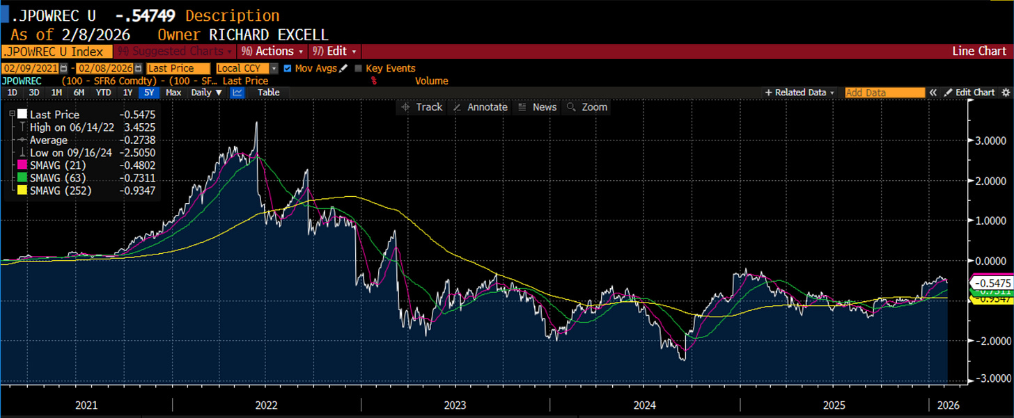 The business cycle investing approach would also look at the price action we have seen in the US this year and suggest the market is of the opinion we are in the “Overheat” phase of the cycle, where growth is heading higher and inflation is also still rising. Commodites and cyclical value are the clear winners in 2026. This view on both growth and inflation will get some catalysts this week with both the non-farm payroll and CPI reports being released: