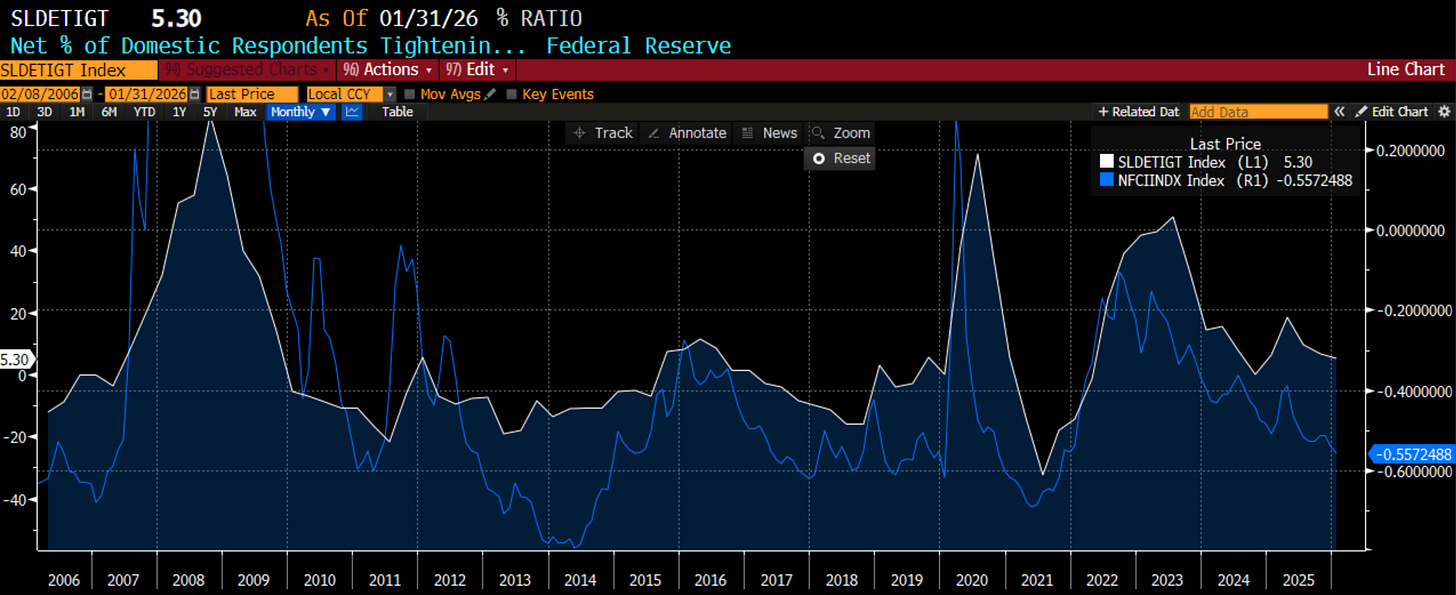 The banks have been willing to lend. This is why the Chicago Fed Financial Conditions Index is still saying financial conditions are quite easy. This is another driver of the improving growth numbers we see. It is important because even with the tax incentives for capex in OBBA, if the banks were willing to make those loans, they wouldn’t happen. However, demand and supply of loans for capex appear supportive: