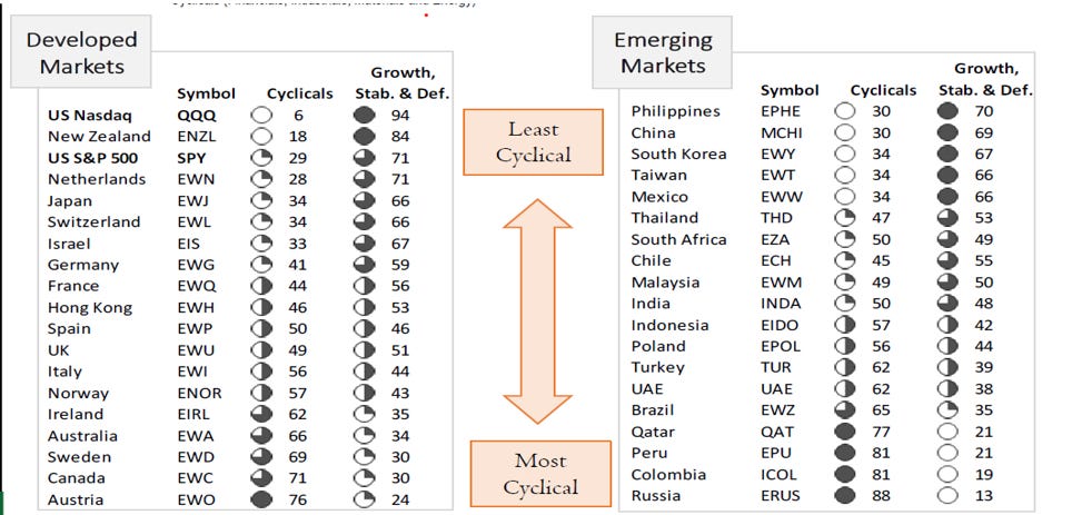 Believe it or not, the US is considered “defensive” versus the rest of the world. This may be hard to believe with US stocks prices hitting all-time highs but the cyclicality of the US markets is among the lowest in the world. This is particularly the case with the Nasdaq, the US market doing the worst. The most cyclical markets? Emerging markets which are clearly besting the US. These indexes are heavily composed of names in the basic resources sector and so it makes sense. So not only do we see a rotation within sectors in the US that suggests “Overheat” and higher growth, but the move from the US into other countries is screaming the same thing. This chart comes courtesy of PiperSandler: